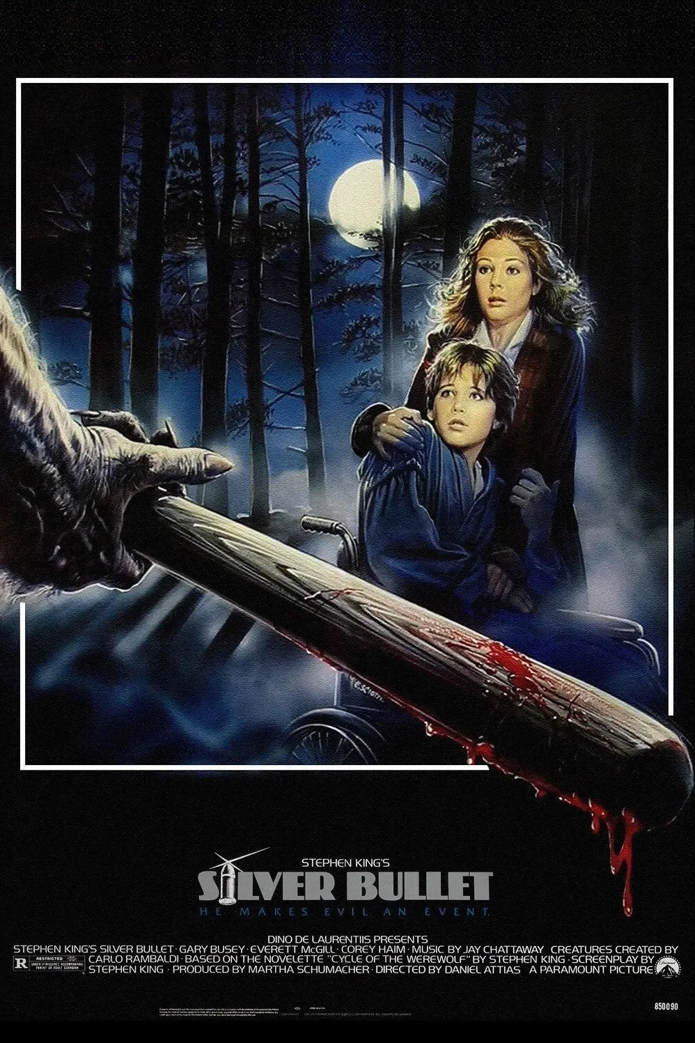 Cory Haim plays the protagonist, Marty, a boy who is paralyzed from the waist down and suspects that a series of brutal killings in his small town are the work of a werewolf. That’s about it, plotwise.