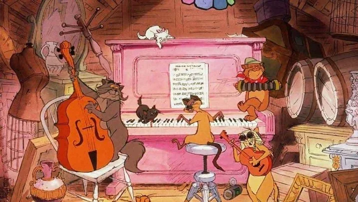 In the case of The Aristocats, the stoners would definitely be the charming alley cat J. Thomas O’Malley and his ragtag group of musician friends, including Scat Cat, the band’s lead vocalist and trumpet player. These groovy cats are trying to help a pretty dame named Duchess and her three kittens find their way home, where an evil butler kidnapped and then deserted them in the faraway countryside.