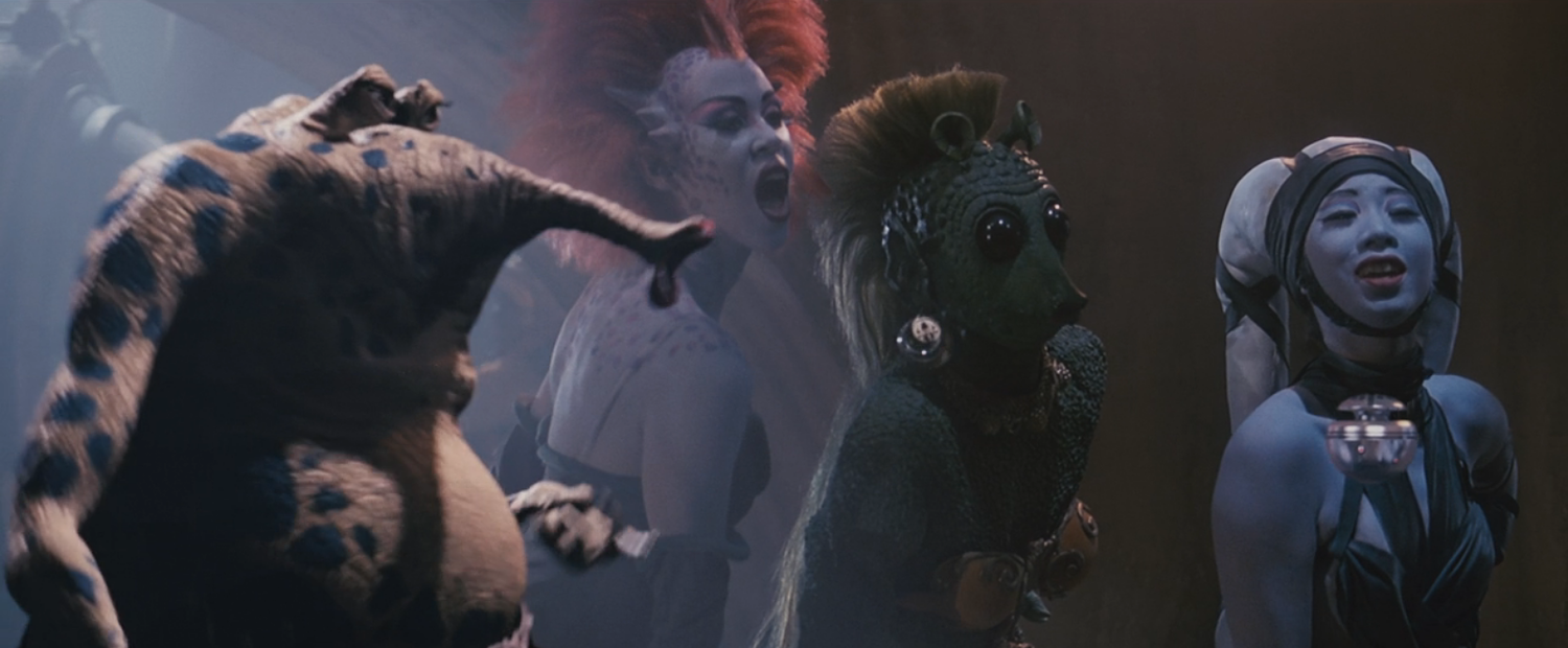 And alien frogs are not the main culprit. There is a fucking musical sequence done in CGI that feels like Phantom Menace. By that I mean comedically tone-deaf and weightless. It takes the audience, or at least me, five minutes to recover and re-involve myself in the tone and feel of the original movie. Later there is a galactic celebration when the second Death Star is destroyed. Again, done in CGI. Again, it feels like the Phantom Menace. Again, it is shit.