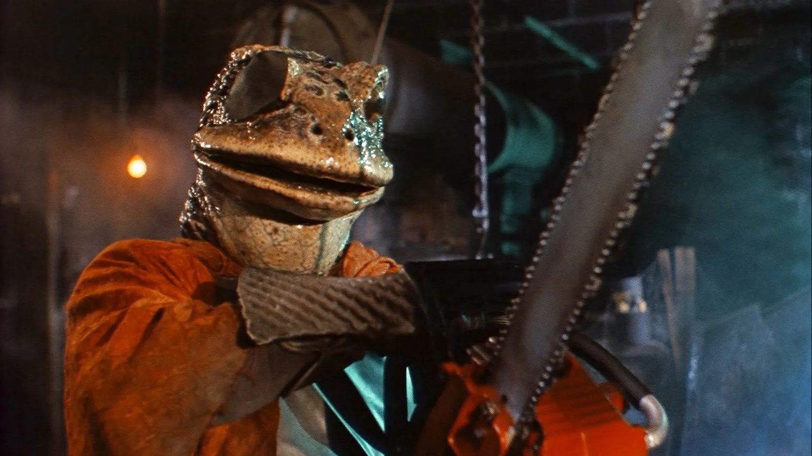 And what is Hell Comes to Frogtown? It’s a futuristic, post-apocalyptic tale in which humans are rendered sterile and a race of menacing frog people have risen to take over earth. The human government has a department dedicated to finding the few fertile men remaining on earth, and Rowdy Roddy Piper’s character, Sam Hell, is identified and apprehended to go on a mission to rescue and then impregnate a harem of women held captive in Frogtown, a city filled with mutant frog people.